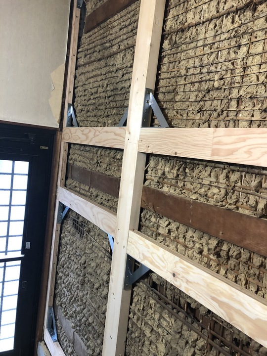 築年数30年~40年の在来木造軸組み(一般的な作り方)工法の家です。この時代より古い建物は基礎に鉄筋がなく筋交いという斜めの木を設置していない現場が多く、地震の時の心配がされております。