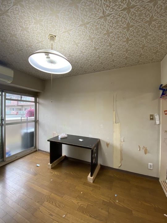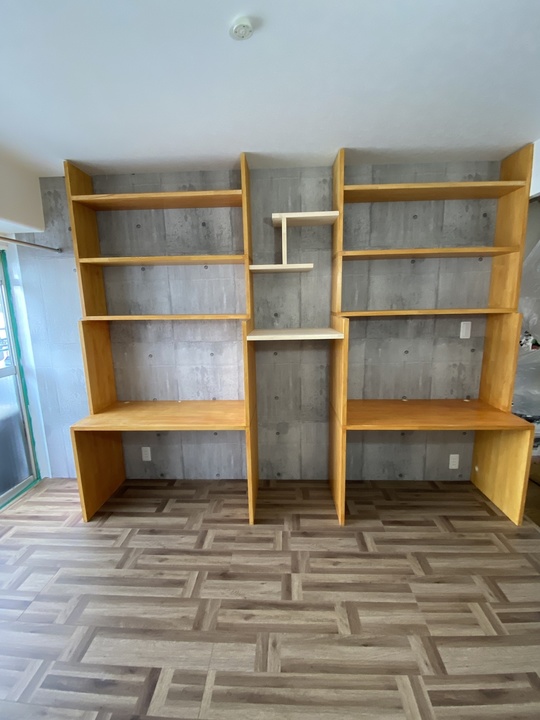 壁紙には抗ウイルス性のある壁紙、デスクは安価なパイン材で作成。塗装はお客様のDIYで塗装中です。