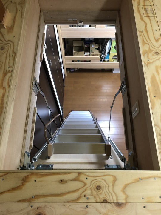 子供が大きくなり荷物も増えてきたので物理的に収納力をあげることのできる天井裏収納を作成いたしました。