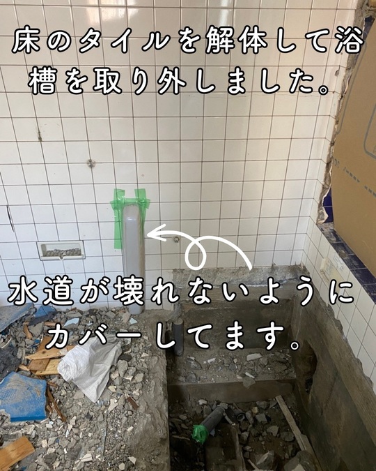 タイル風呂からのユニットバスなのですが最小寸法でも入らないという事で拡張することにしました。