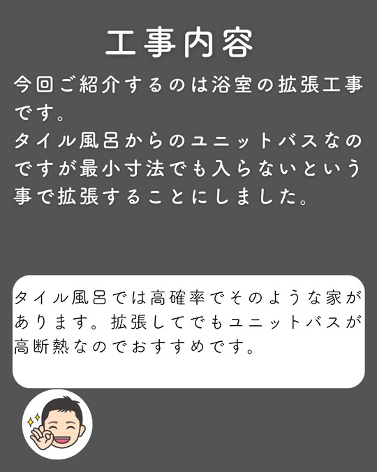 今回ご紹介するのは浴室の拡張工事です。