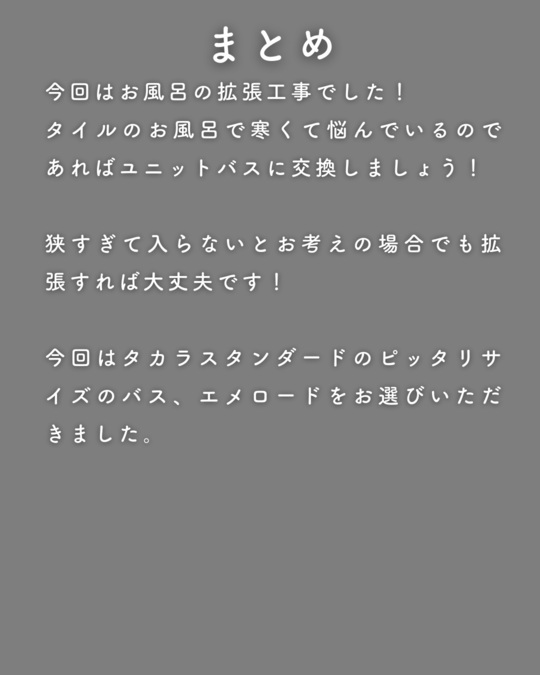 タイル風呂では高確率でそのような家があります。拡張してでもユニットバスが高断熱なのでおすすめです。