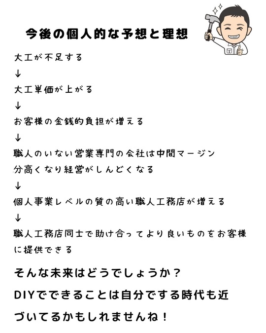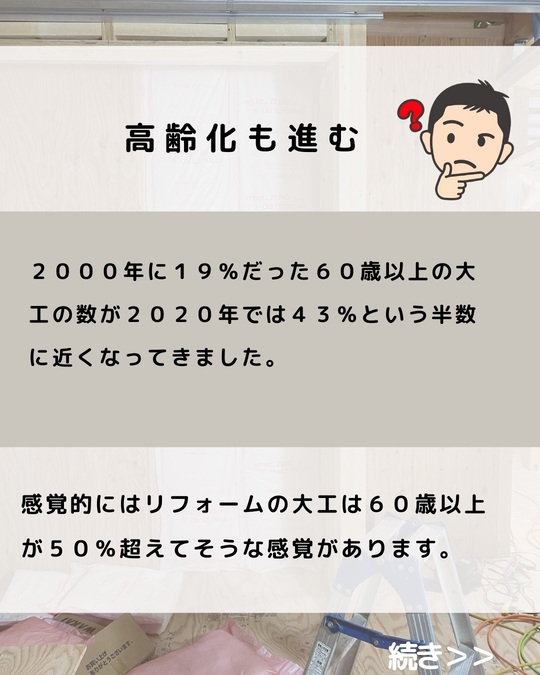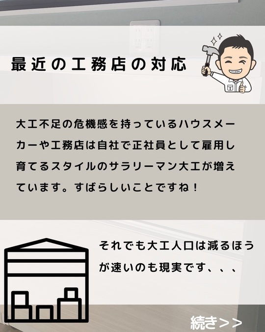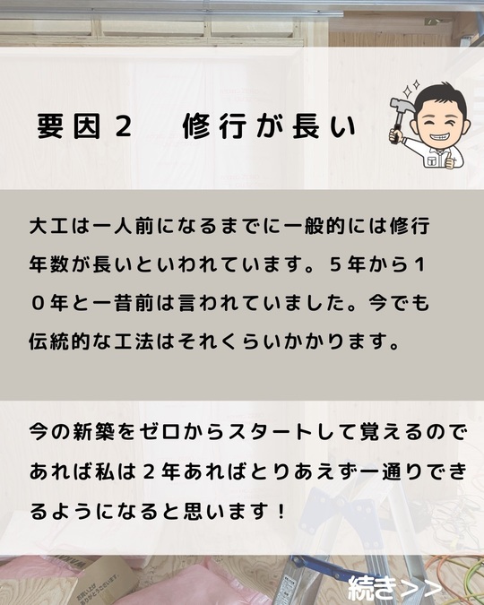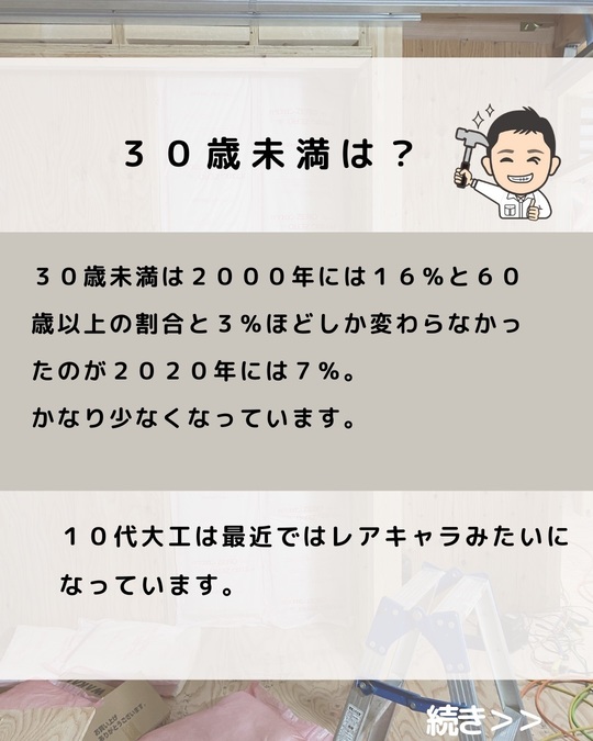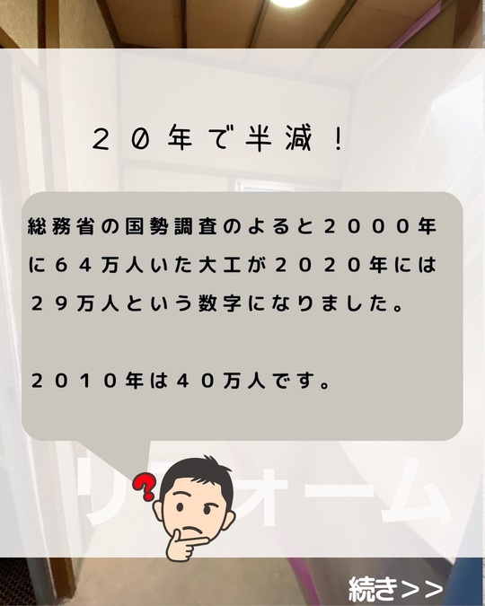 今後は半減となる見込みの大工。新築は減らせばよいのですが