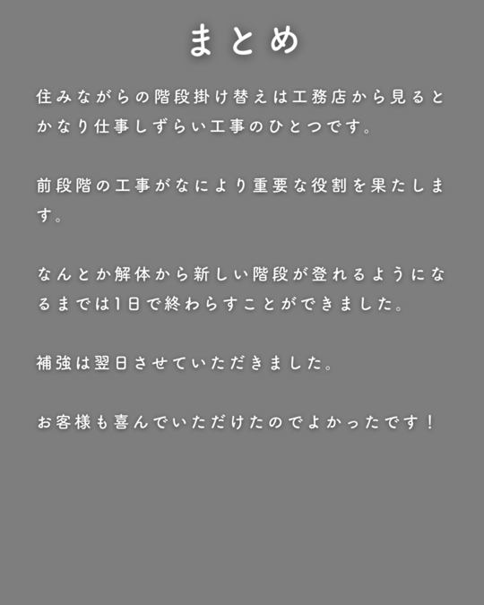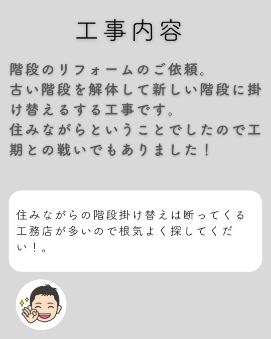 住みながらの階段掛け替え工事という高難度のお仕事のご依頼。