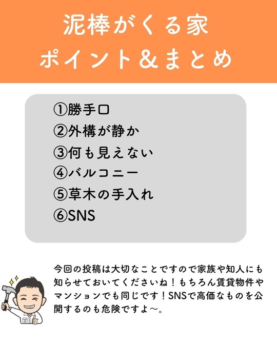 泥棒に「この家は入りやすそう」と思わせないために、 今すぐできる対策 を知っておきましょう!