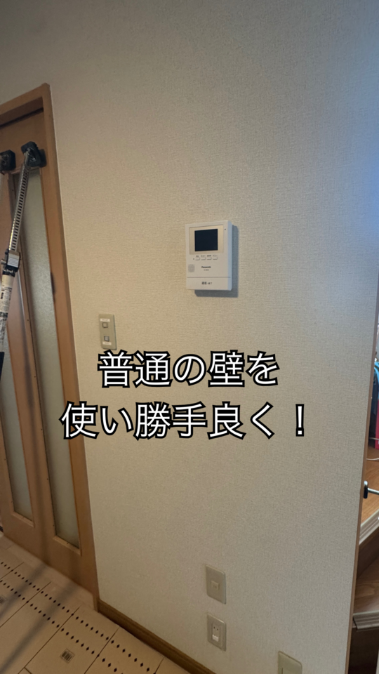 ただの壁を、充電ステーション兼ディスプレイに生まれ変わらせました。置きっぱなし・出しっぱなしが解消し、玄関まわりが驚くほど整います。クロスの色替えや棚の段数変更など、オーダー対応も可能です。お気軽にご相談ください。