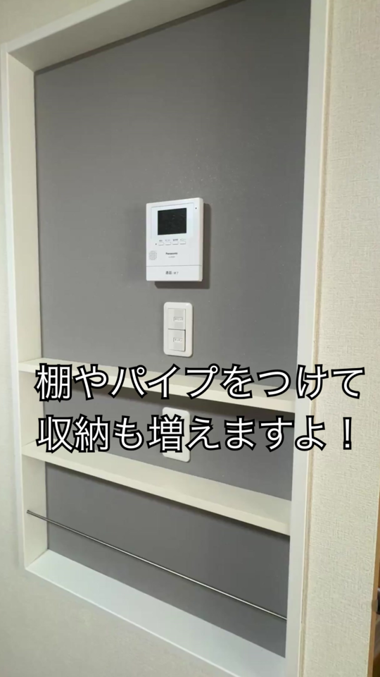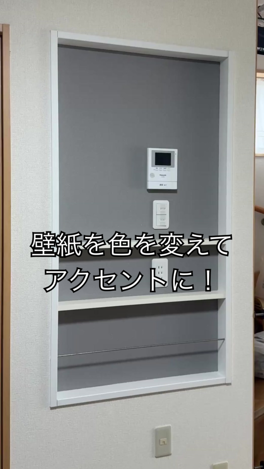 背面をグレーのアクセントクロス、枠はホワイトで仕上げ